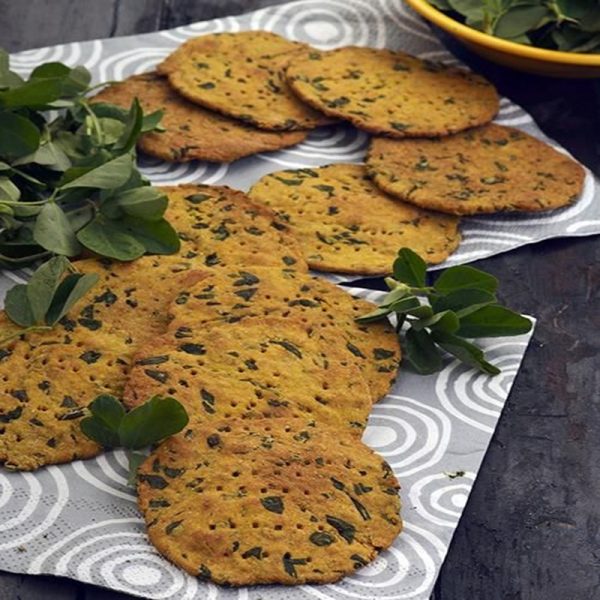A delectable pancake prepared with wheat flour, fenugreek leaves, and spices that goes well with pickles or yogurt.