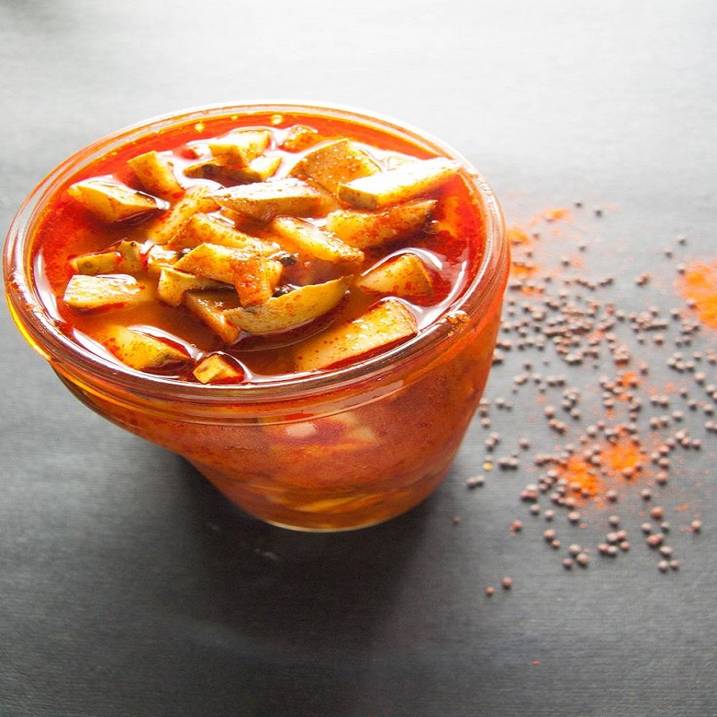 Aam Meetha is made with raw mangoes, spices, jaggery and salt. Can experience the sweetness and sourness of the mango pickle