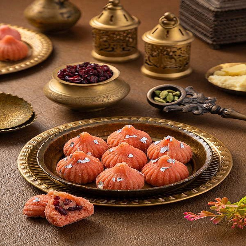 A tangy-sweet delight with dried cranberries and crunchy almonds, offering a refreshing twist to the traditional modak.