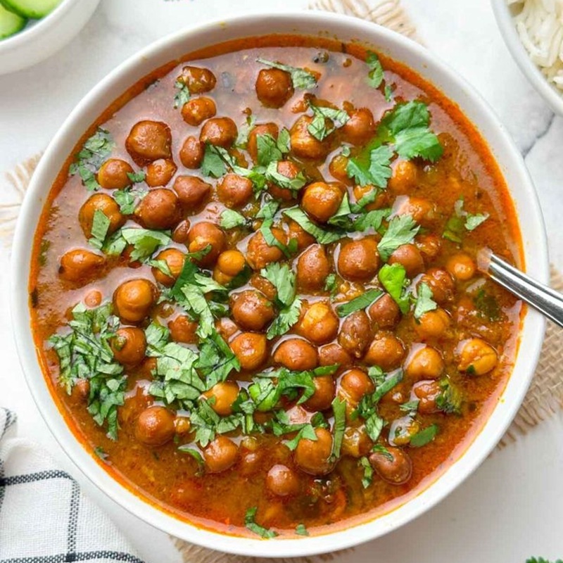 A hearty curry made with protein rich black chickpeas simmered in aromatic spices and served with soft parathas for a wholesome meal.