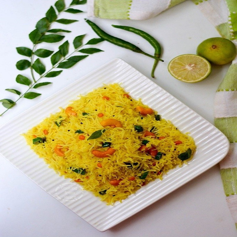 Tangy and fragrant Lemon Sevai made with rice noodles, tempered with mustard seeds, green chillies, and curry leaves, served with creamy coconut chutney for a vibrant and flavourful meal