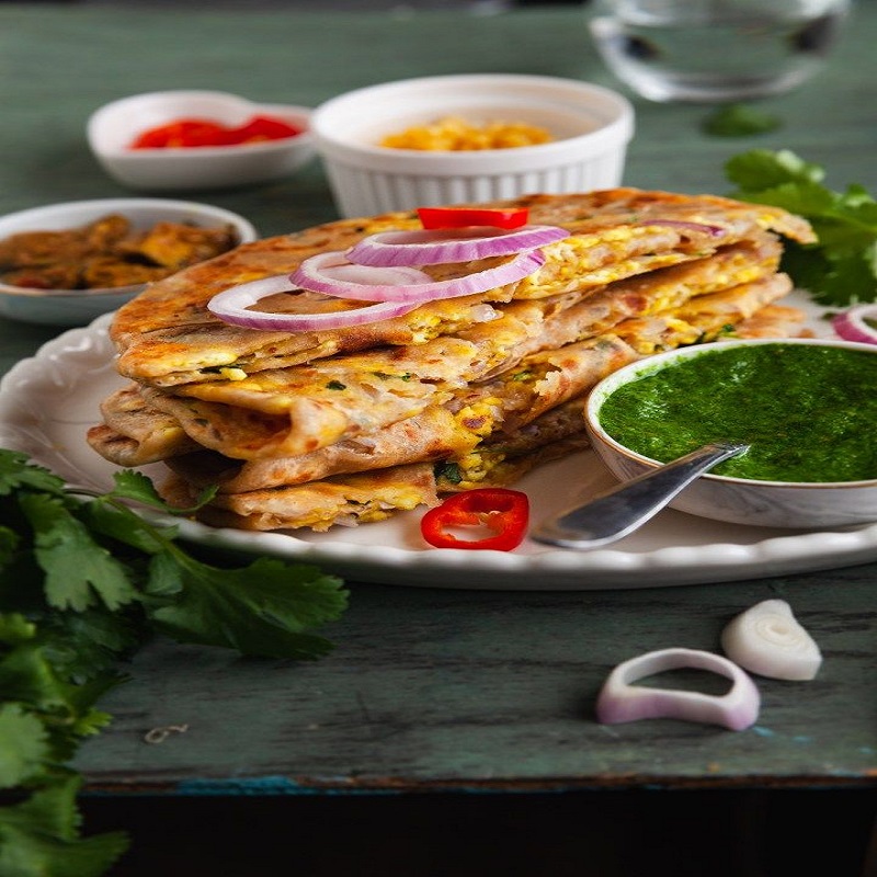 Paneer Paratha is a delicious Indian flatbread stuffed with a spiced, crumbled paneer filling, flavored with herbs and aromatic spices
