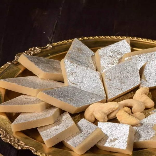 Sweet shakarpara is a popular Indian jar snack consisting of crispy flaky and mildly sweet fried or baked dough pieces