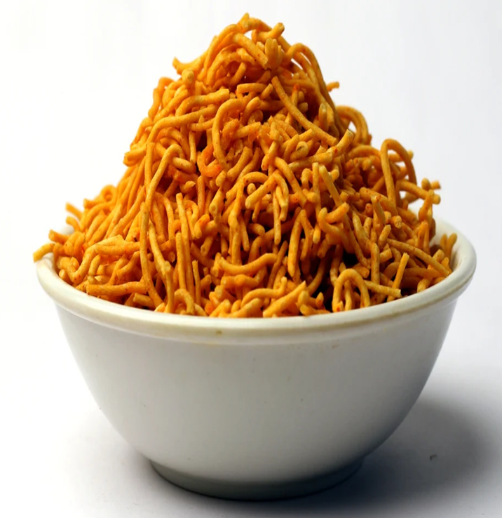 Tikhi Sev is a popular crunchy Indian savory snack made from gram flour besan and a blend traditional spices like red chili powder black pepper and carom seeds