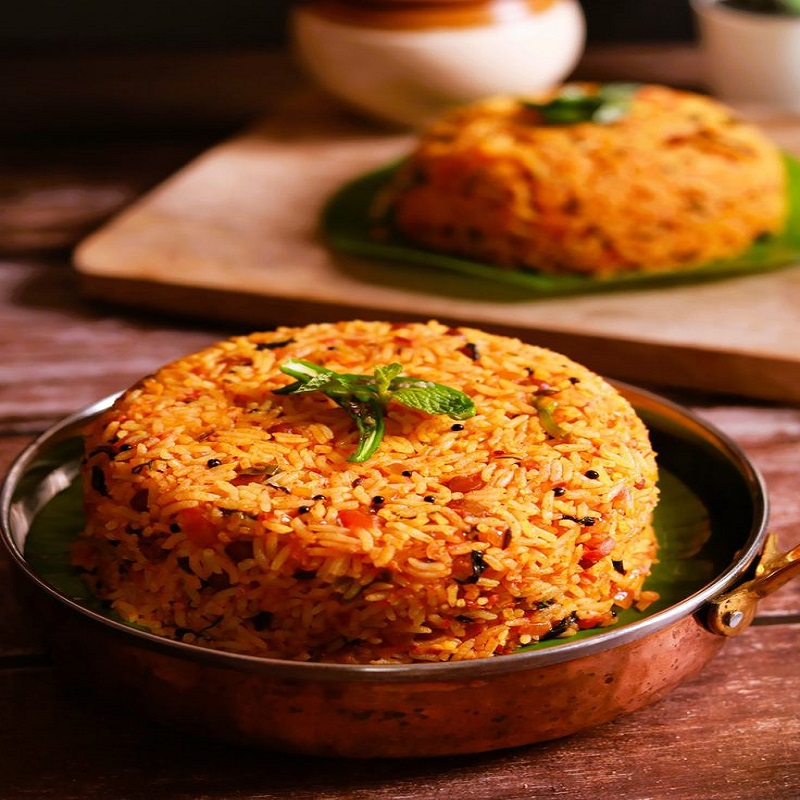 Tomato rice is cooked with lots of tomatoes, fresh herbs, whole spices and ground spices